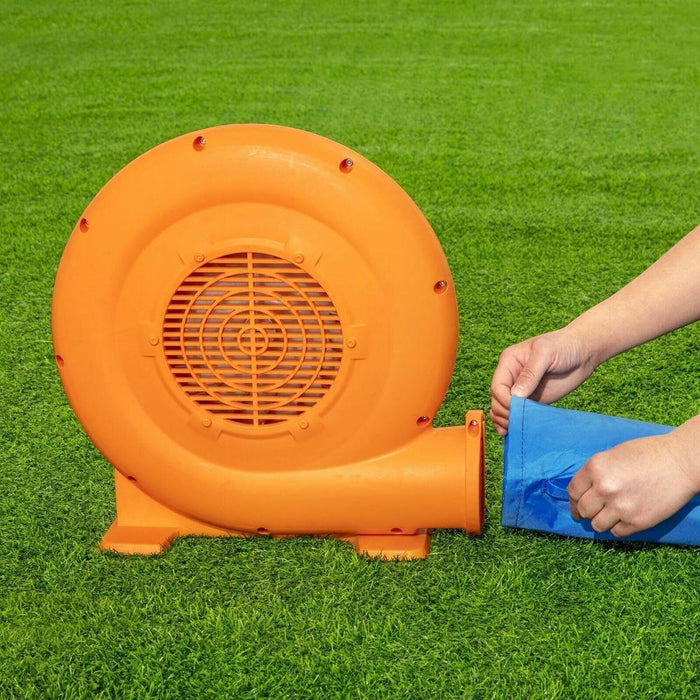 • The heavy duty blower inflates the water park in less than 2 minutes Water sprayer pad keeps slide slippery