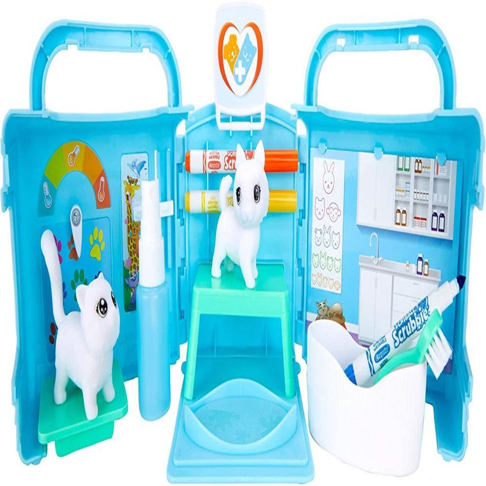 • SCRIBBLE SCRUBBIE PETS: The Scribble Scrubbie Pet Vet Toy features a folding vet playset with 3 Scribble Scrubbie Markers, 2 Toy Pets, Instruction Sheet, Spray Bottle & Brush.
