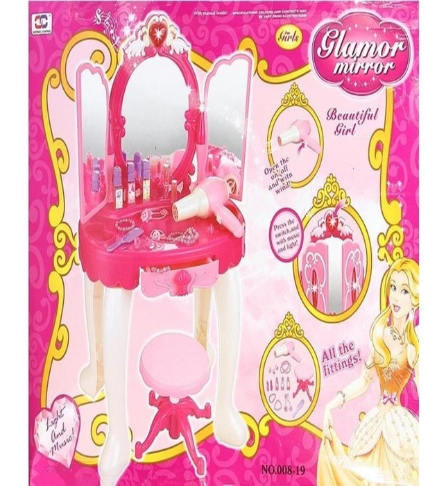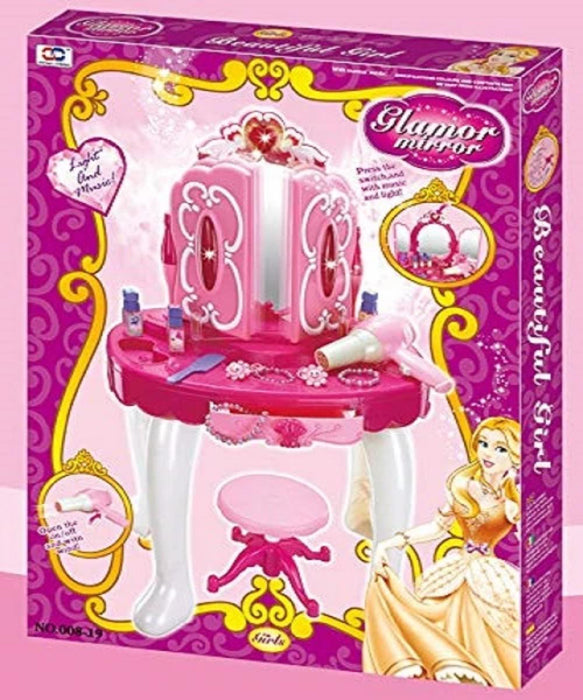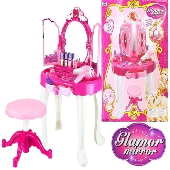 - Glamorous Triple Mirror Pretend Play Battery Operated Toy Beauty Mirror Vanity Play Set