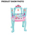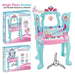 2 modes included, music mode and key mode, easily switch between them with a button Loads of accessories like a working hair dryer, comb, lipstick, nail polish, bracelets, and more Heart-shaped inductive sensor button for easily controlling the door, music, and lights Light-up princess image appears in the mirror to keep you company! None of the makeup pieces are real or will create a mess Includes a small pull out drawer for storing the makeup accessories High quality, non-breakable PP plastic material for durable use, non-toxic for maximum safety Designed for little girls