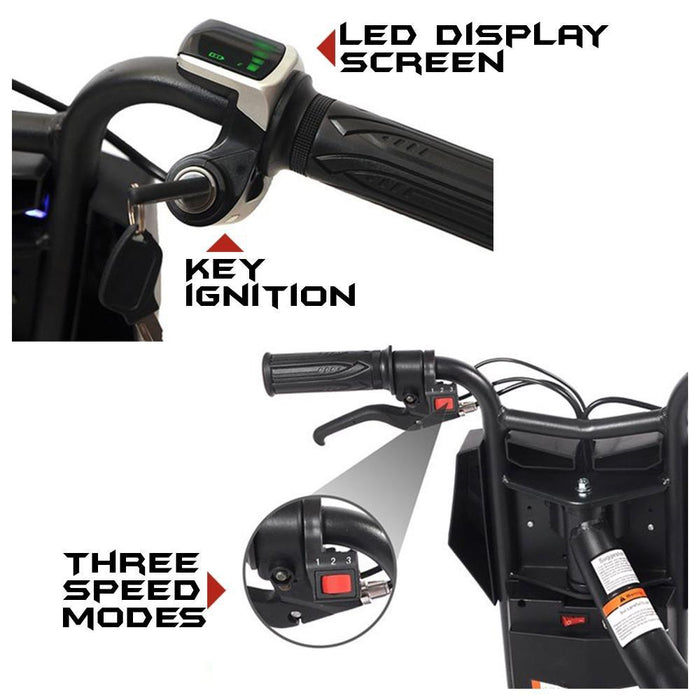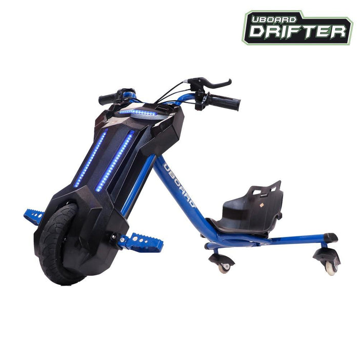THE UBOARD 3 WHEEL DRIFT CART is powered by a high capacity Samsung lithium-ion battery for 4 times faster charging and up to 3 times the play time than the traditional lead acid battery. The Drift cart comes with exciting new features like Bluetooth speakers and LED lights.