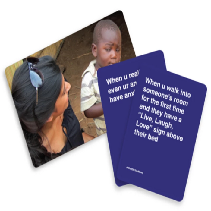 Party card game for friends for the social media generation. Think you've got what it takes to out-meme your friends IRL? Compete to create the funniest meme by pairing Caption Cards with the Photo Card in play. A rotating judge picks the best combination each round. Play until you're hungry, at which point stop playing and order a pizza. The rules are simple. Each round, a rotating judge plays a Photo Card and everyone else plays a Caption Card to complete the meme. The judge decides the funniest pairing, and whoever played the winning Caption Card wins the round. Lather, rinse, repeat.